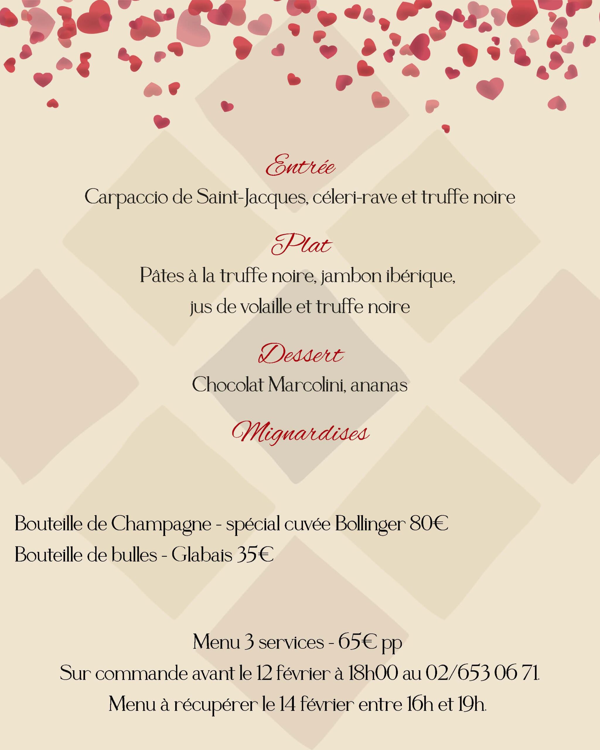 Les menus sont servis pour l’ensemble de la table. Toute allergie ou intolérance doit être signalée avant le repas.